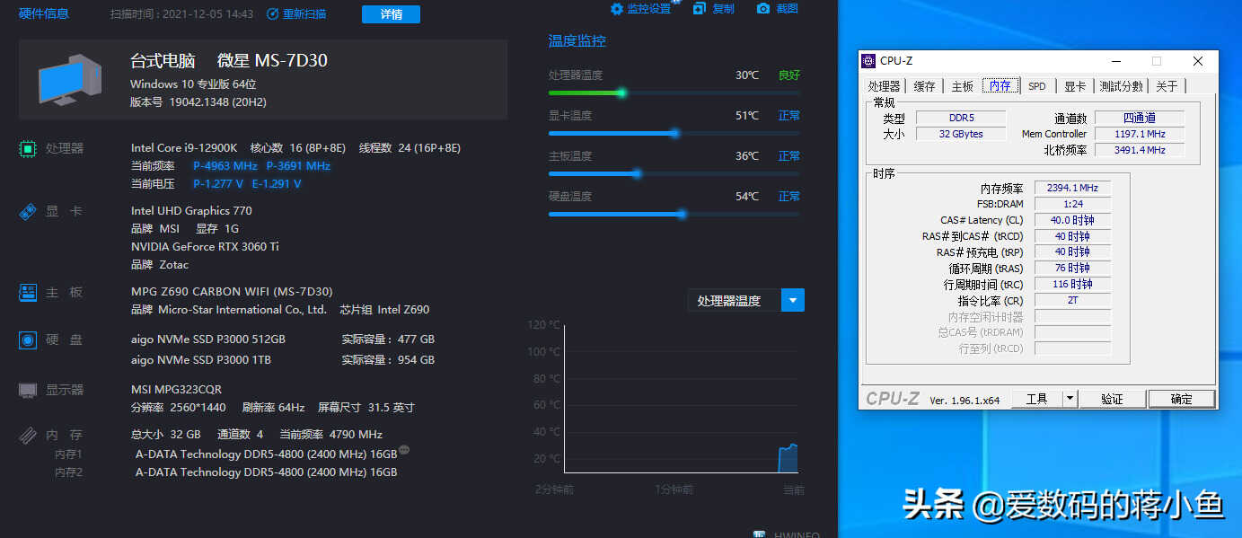 ▼这次使用的平台就是Intel第12代平台,主板是微星MPG Z690 CARBON,是现在旗舰的Z690芯片组,可以完美支持DDR5内存。