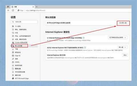 (1)打开edge浏览器,然后点击右上角的三个点,然后点击【设置】;在打开的设置页面中,点击【默认浏览器】,接着在右边找到将 Microsoft Edge 设为默认浏览器,点击【设为默认值】。