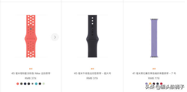 苹果官网自己家的表带价格就相比某宝某东还是要贵上不少,也要几百块一对但是相对奢侈品来说已经很好了,如果有同学想体验一把苹果的产品可以在官网选购,我买过一对编织表带使用效果不错,就是待久了表带吸了汗吸了其他东西闻起来巨恶心。等下说说具体表带的优缺点