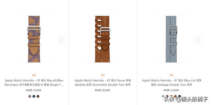 不得不佩服苹果,将一个表带跟爱马仕结合将表带做成了奢侈品牌。一个表带可以买上三四个Apple Watch 爱马仕联名款表带,无论材质,带上就能走出六亲不认的步伐,高不可攀。起码不是我这等人能消费得起的。不过爱马仕联名款的表带也确实设计比较前卫不是富家子弟,不是经常用奢侈品的同学劝你别买了了,毕竟气质这方面就hold不住。爱马仕联名款表带主要以皮质的为主还有几款是编织表带,售价也非常高比买Apple Watch 还高。4000到7000一对表带。反正就是奢侈品贵就完事了,主要适合的人群就是凸显身份的富家子弟。