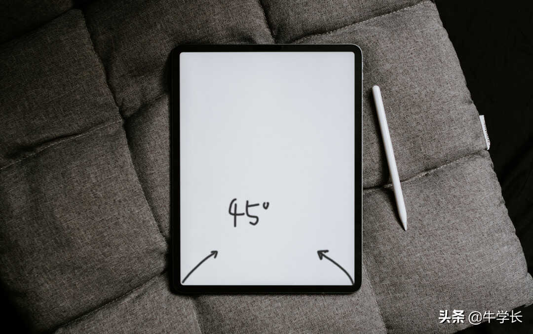购入了Apple Pencil的小伙伴,只需用Apple Pencil从iPad的左下角或右下角,向斜上方45度轻轻一划,即可截屏。