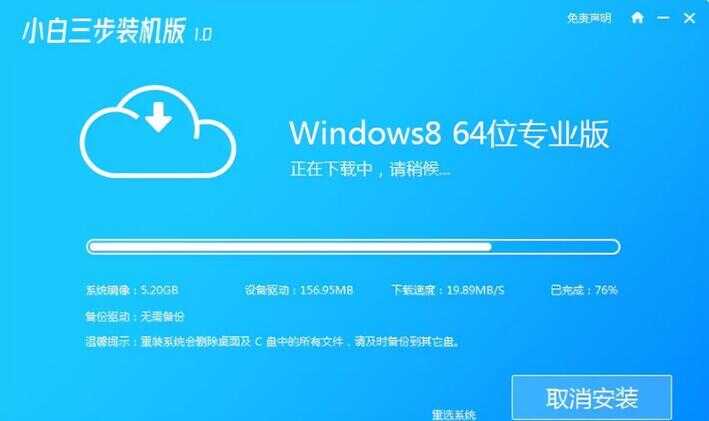 1、首先我们打开电脑,将桌面上的小白三步装机版软件打开,在进入的主页面中选择win8系统,点击立即重装。