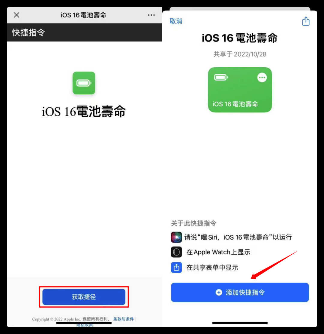 点击链接后,选择「获取捷径」—「添加快捷指令」即可。