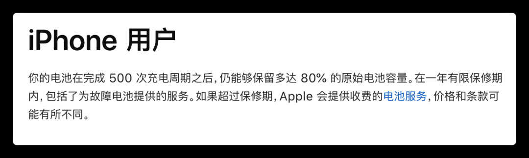 按照苹果的说法,当用户完成 500 个充电周期后,电池容量仍然能保持在 80% 以上。