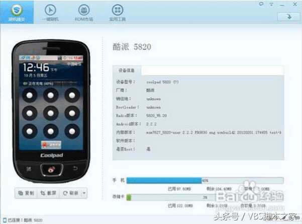 2、连接手机,如果连接失败,就重新插拔手机,或者关掉刷机精灵,再打开,进行连接