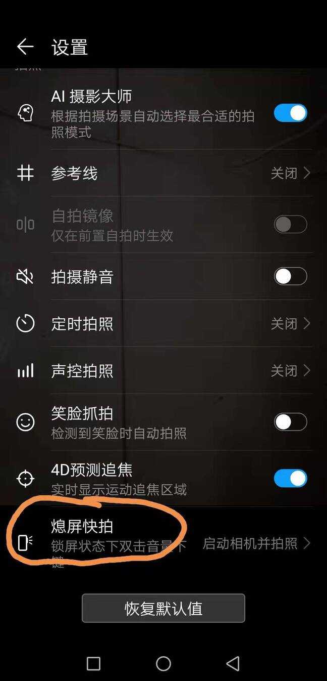 2.点开“息屏快拍”选项;