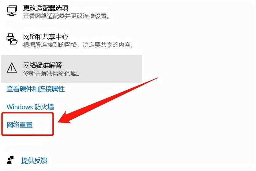 点击进入“状态”选项,下拉菜单找到“网络重置”选项。如下图: