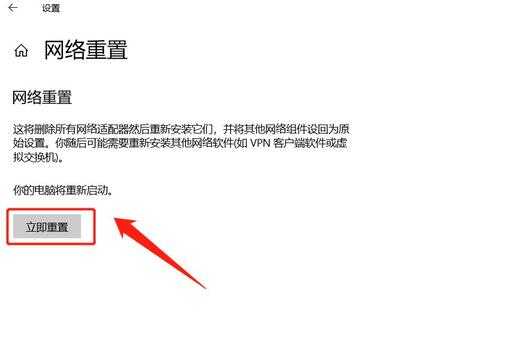 点击进入“网络重置”选项,在弹出的界面里选择“立即重置”。如下图: