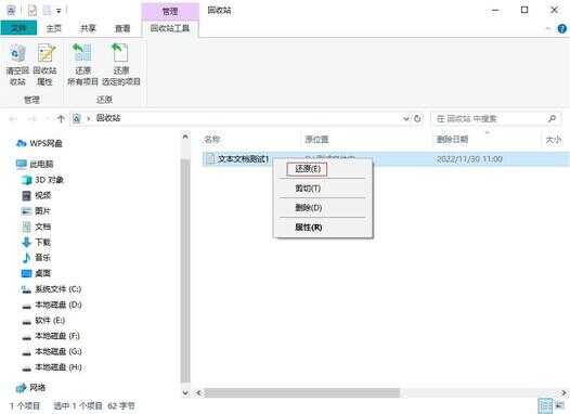回收站作为电脑删除文件后的“中转站”,能够用来存放用户临时删除的各种文件,如果需要恢复误删文件,回收站未清空的情况下是可以恢复的。恢复方法也很简单,具体操作步骤如下: