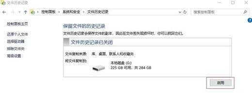4、在文件历史记录界面中,如果这个功能已开启,则可以在文件历史记录当中找到删除的文件,如果没有开启,则不能找到。为了文件数据的安全,建议立即启用。