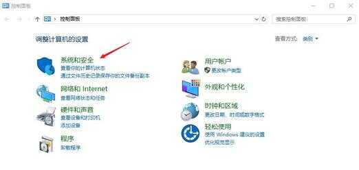 2、进入控制面板界面,类别查看方式下找到“系统和安全”并点击。