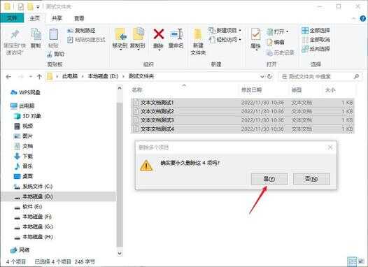 为了更好的演示恢复效果,我们对文件夹里面的文件进行“shift+delete”永久删除操作,这时会弹出确认删除提示框,单击“是”以后即可删除。