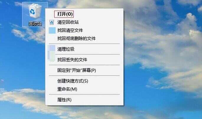 1、找到电脑桌面上的回收站图标,鼠标右键单击选择“打开”。