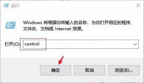 1、按下Win+R弹出运行框,输入“control”点击确定。