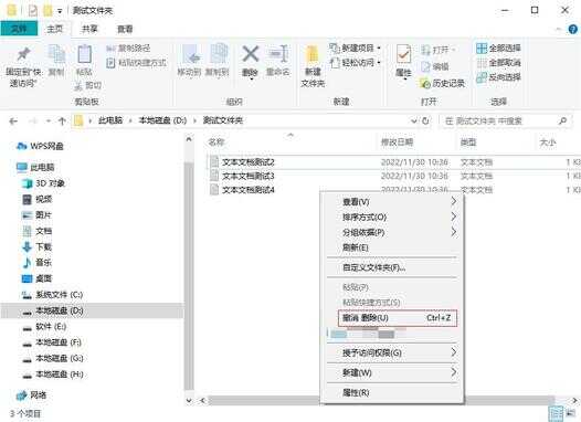 如果你使用的是普通的删除方法,如使用delete或鼠标右键删除文件夹里的文件后没有进行其他操作,可以采用撤销恢复删除文件。方法很简单,具体操作步骤如下: