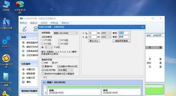 4.进入pe以后,需在uefi下安装win10系统软件,计算机硬盘必须GPT如果分区表已经自带了,win10型号,立即实施第7步,必要时,双击鼠标桌面分区助手(高质量),选择硬盘1,点击快速分区,如果您是几个计算机硬盘,应该选择正确,不要错误删除。