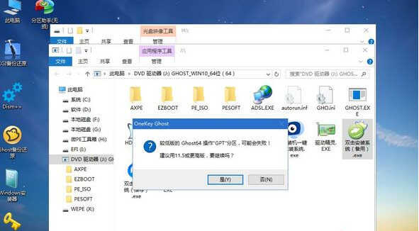 8.双击鼠标双击鼠标重新安装系统.exe】操作安装工具,选择【恢复系统分区】,GHOWIMISO印象途径将自动获得win10.gho,一般安装在C盘上,点击清楚。