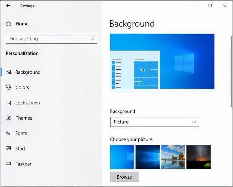 您还可以前往“设置”>“个性化”>“背景”,然后使用“浏览”按钮在系统上查找壁纸图像。