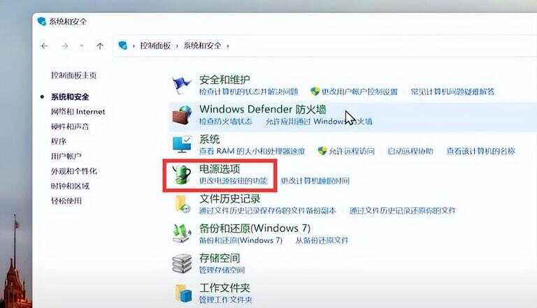 2、打开系统和安全窗口,在系统安全窗口右侧找到“电源选项”。