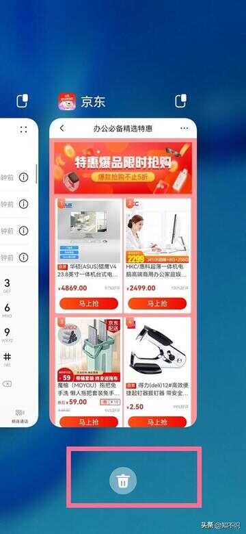 2、将想要清除的程序向上滑动即可,或者点击下方的垃圾桶图标可清除所有程序。