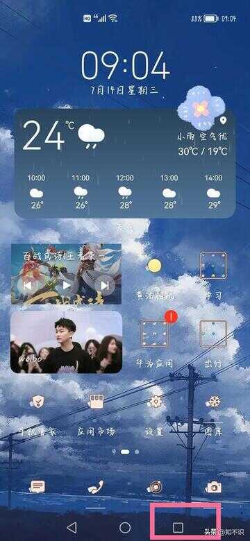 虚拟按键导航模式:点击屏幕下方的方块键,呼出后台应用。