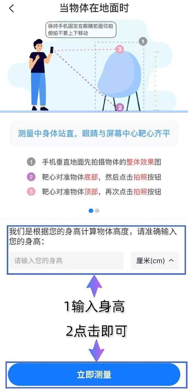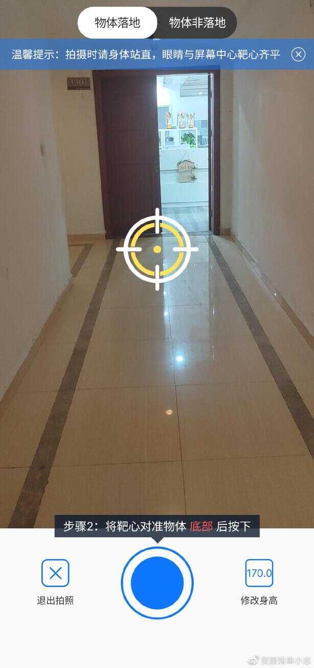 3,身体站直,眼睛与屏幕中心靶心齐平,注意要拍摄物体的整体图,顶部,底部,同时也要留意物体是落地还是非落地。
