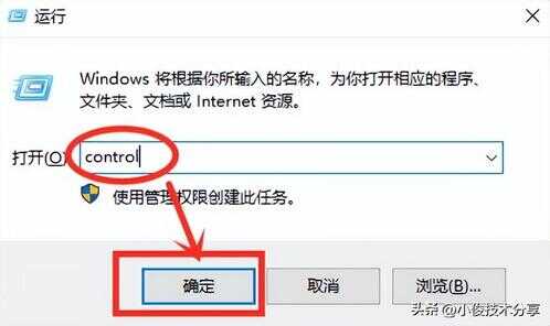 首先我们按下键盘上的【win】键和字母【R】按键,win键叫田字格键,我们需要同时按住这2个按键,按下之后就会跳出运行输入窗口,那么我们在运行框中输入:【control】这串代码,然后点击确定!