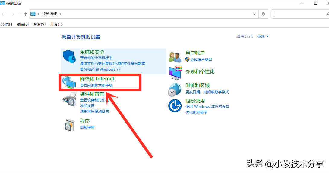 此时就会打开【控制面板】界面,在控制面板里面我们选择【网络和Internet】这个设置开关