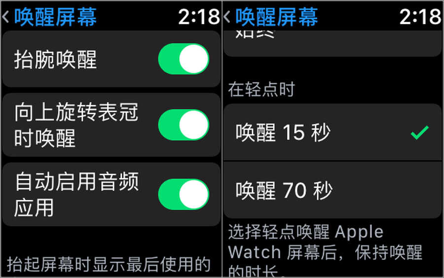 抬腕唤醒这个功能非常实用,但确实也是耗电大户。如果你比较在意电池寿命,就选择关闭抬腕唤醒功能吧。不过一定要将屏幕唤醒时间设置为15秒。