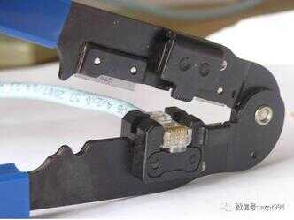 g、 将上面做好的水晶头放入压线工具用力压紧