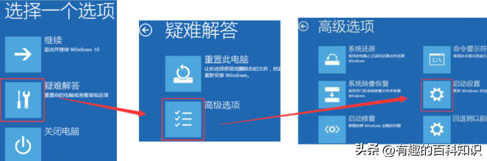 3. 选择“疑难解答”—“高级选项” —“启动设置”;