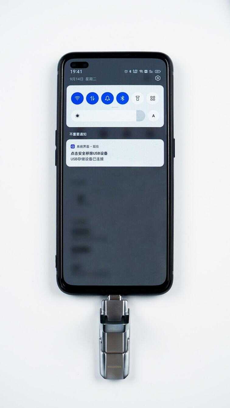 从手机上移除U盘的操作也和电脑差不多,下拉通知栏点击这个通知即可。需要提醒大家的是如果U盘默认为FAT32格式,需要先格式化到FAT格式才能被手机识别。