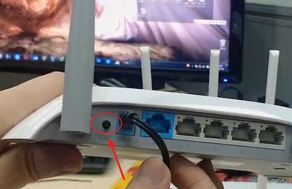 2、然后我们找到路由器上面的一个重置插孔,一般在网线接口旁边能找到。