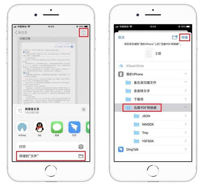 3.这份纸质文稿就被扫描到备忘录中了,大家不要以为这是图片,其实是PDF电子文档,点击右上角的分享按钮,选择【储存到"文件"】,将它储存到手机文件夹中。