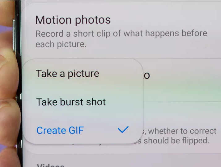 打开相机,点击“设置”键。点击“按住快门按钮”。选择“创建GIF。