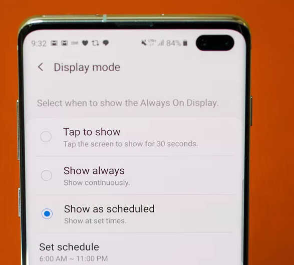 进入设置,点击锁定屏幕。点击“Always On Display”,切换到“On”。然后点击“显示模式”。选择三个选项,包括安排“休息”时间。