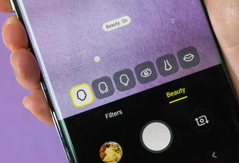 打开相机应用程序,点击魔棒图标。滚动通过过滤器或点击“美颜模式”,并作出您的选择。