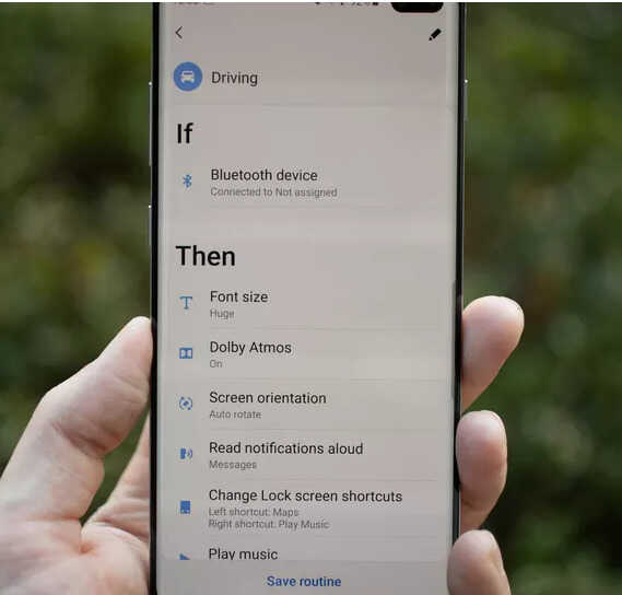 有一个驾驶程序,例如:Bixby程序可以通过蓝牙连接到您的汽车。如果它检测到你在车内,它可以打开一系列应用程序和设置,大声读出你的通知,改变地图的锁定屏幕快捷方式,启动Spotify并解锁手机。您可以调整所有这些设置来自定义它们。