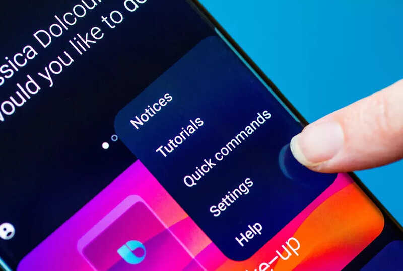选择是按一两次Bixby按钮启动应用程序还是快速命令,然后点击突出显示的蓝色文本从列表中进行选择。