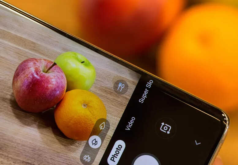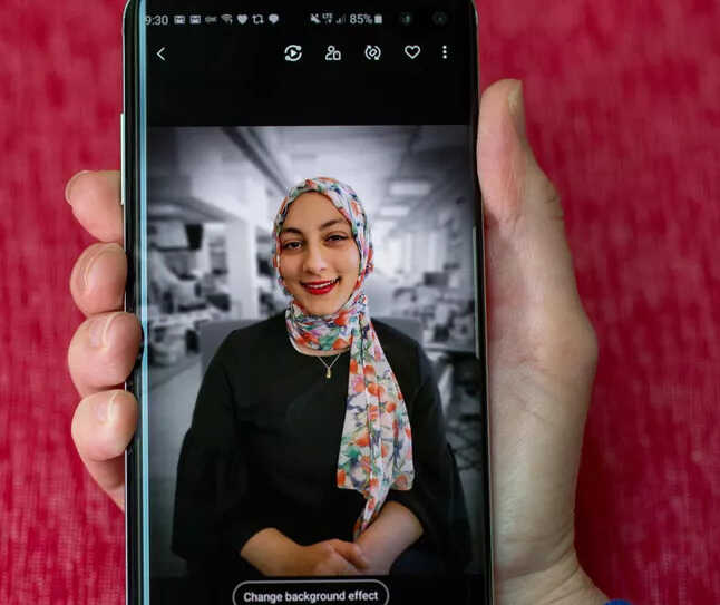在相机应用程序中,点击实时对焦模式(照片左侧)。然后点击四个相机效果中的一个来应用。使用滑块来改变效果的强度。