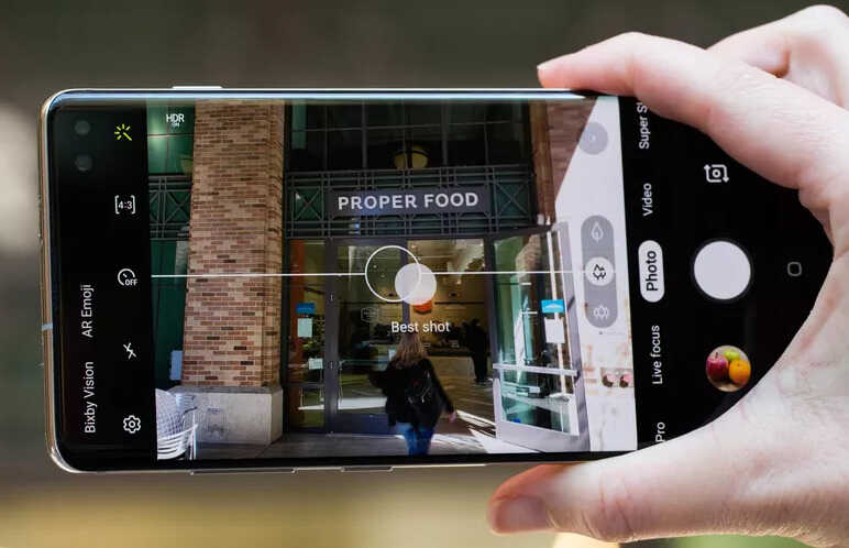 无论你的Galaxy S10至少有两个甚至三个后置摄像头,你都可以轻松地在它们之间切换,只要轻触取景器,就能看到更宽或放大的场景。