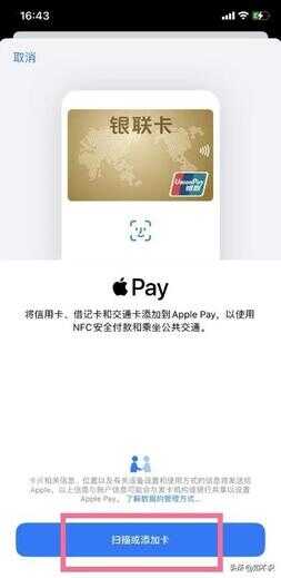 第二步:进入此页面之后,选择并点击【扫描或添加卡】(如下面图片所示)。