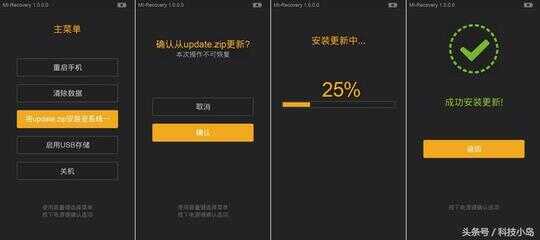 方法2:通过Recovery升级,MIUI完整包跨版本升级、降级均需清除全部数据。因Recovery界面不同,(暂不适用mtk平台的红米手机也不适用带有BL锁的机型)。
