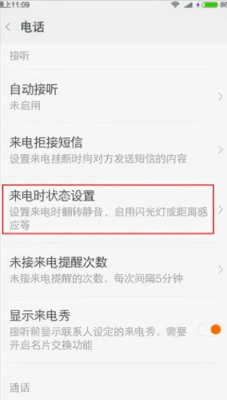 找开手机点击”设置"选项,然后依次点击“系统应用”-“电话”-“来电时状态设置”,最后开启“来电闪光灯”即可。