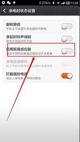 第五步:来到了真正的【启用距离感应器】 记着:一旦启用就黑屏,千万不要启用额~~就完美解决了【小米手机打电话黑屏】的问题啦!!!