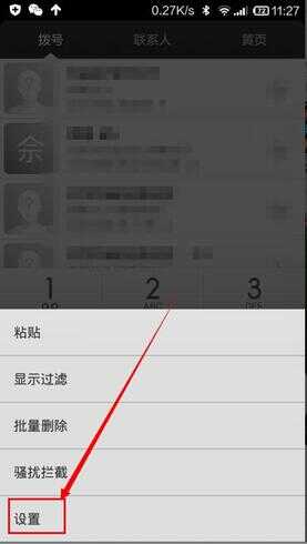 第二步:进入拨号界面后,点击最左边的键,选择设置