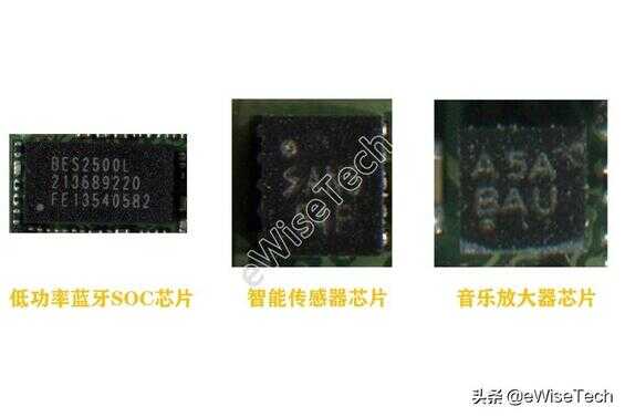 在芯片方面,智能眼镜3主要采用了2颗恒玄低功率蓝牙SOC芯片,该芯片多用于真无线蓝牙耳机。在主板上还有4颗先科电子SEMTech PerSe智能传感器,集成触控和接近感应功能。然后是上海艾为电子第二代音乐放大器芯片,支持防破音、超低TDD抑制,超低EMI功能。