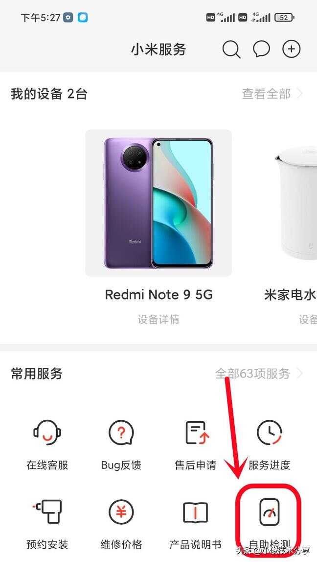 在【售后服务】界面里面就可以看到在常用服务右下方有个【自助检测】的开关