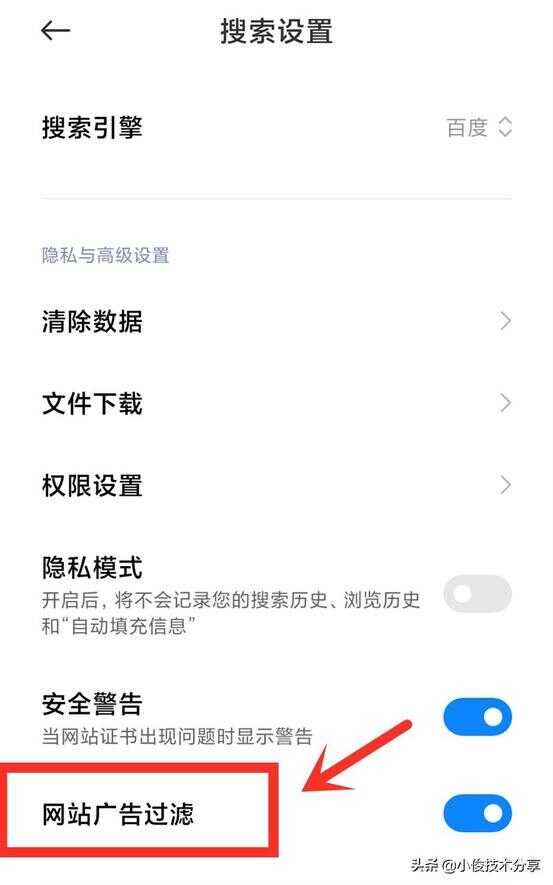 我们在手机上使用浏览器浏览网页或者搜索的时候,经常都会跳出一些弹窗广告,那么这个时候我们就需要把网站广告过滤开关打开,开启之后就可以快速拦截!