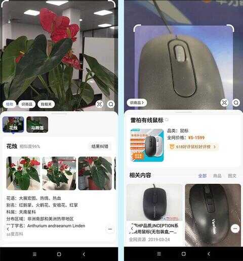 除了扫码,扫一扫功能能够进行识花识物品,将镜头对准不知名的花草盆景,等一会就可以得到这些花草盆景的详细信息,花语、别名、科属、分布区域等。如果将镜头对准商品物品,比如对准常用的鼠标,就可以成功识别商品,并提供商品品类、价格范围等,还提供同类商品相关内容。在这里,我们可以看到对准这个鼠标识别出来的是雷柏有线鼠标,全网价格5~1599元。